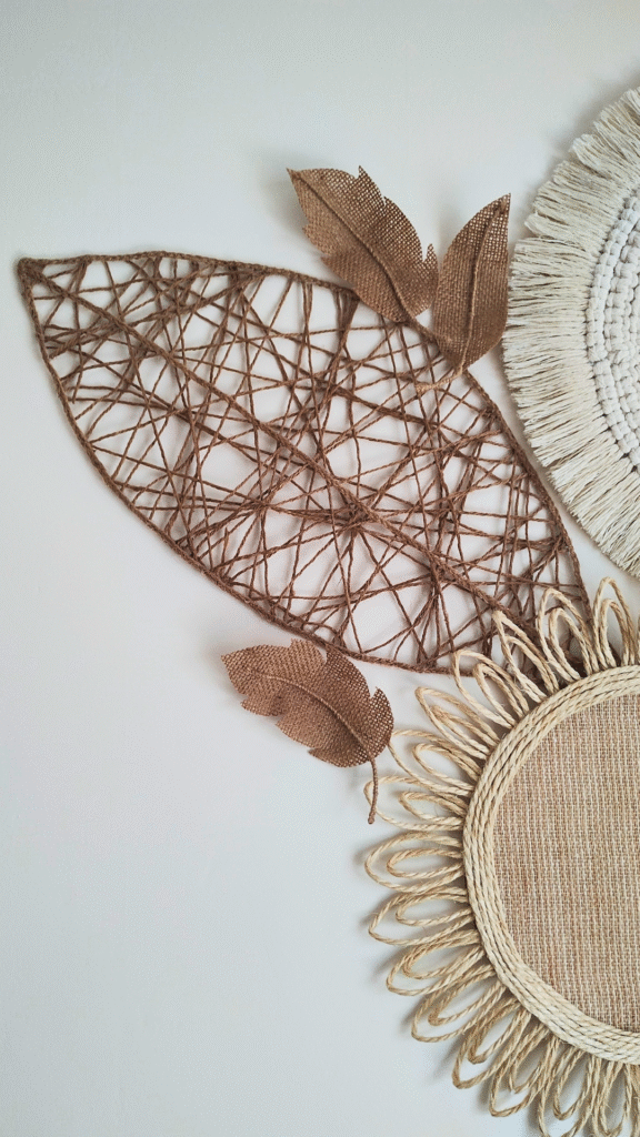 Quer dar um toque aconchegante e natural na sua casa? A folha de juta feita com barbante é uma peça artesanal simples, mas cheia de charme, perfeita para quem ama decoração rústica e DIY.