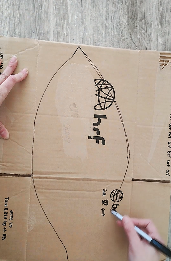 Desenhe o formato da folha em papelão ou em material resistente. Isso será o molde de apoio para o trançado. Caso prefira o molde pronto, ele está disponível para adquirir aqui.