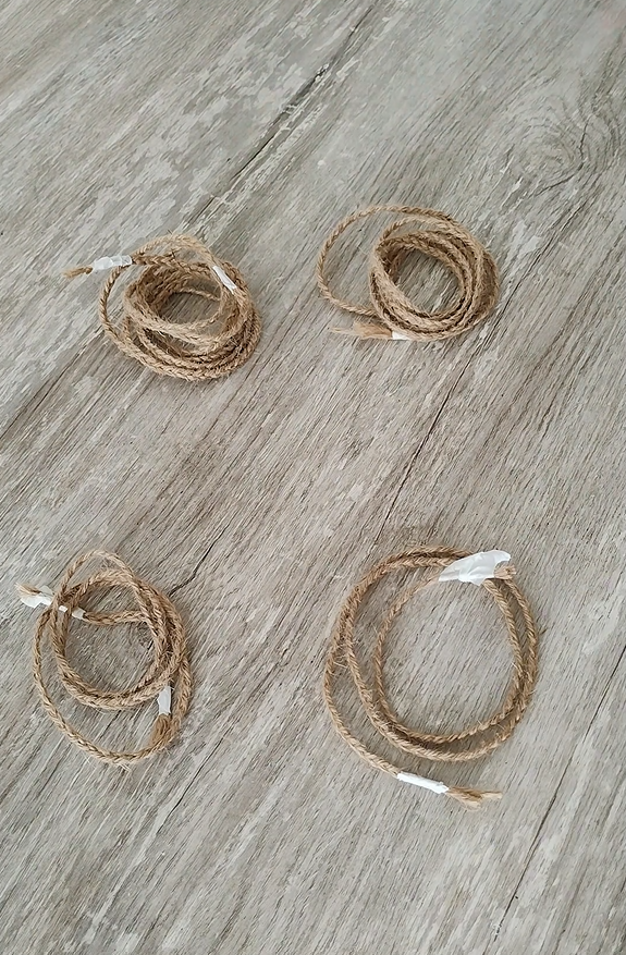 - Aproximadamente 30 metros de barbante de juta (3 passadas de 10 m cada).